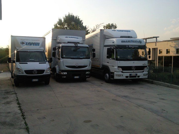 Il parco mezzi della ditta Trasporti e Traslochi Lapati è progettato per garantire la massima efficienza e sicurezza nella gestione e movimentazione di qualsiasi tipo di merce, sia per traslochi nazionali che internazionali. La nostra flotta comprende veicoli all'avanguardia, dotati delle più moderne tecnologie per rispondere a tutte le esigenze logistiche.